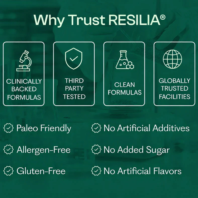 Your body deserves more than empty claims.Resilia® delivers real, measurable resultsusing ingredients with decades of clinical research.
